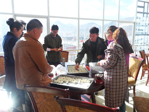 “我為大家包餃子”活動名稱,正體現(xiàn)了十一局拉薩員工相互關(guān)心、相互照顧的融洽工作氛圍。員工輪流到食堂為大家包餃子,場面異常熱烈,其樂融融。等待熱騰騰餃子出爐的時(shí)間里,所有員工圍在大蛋糕前,為12月份過生日的同事送上祝福并獻(xiàn)唱生日歌。
