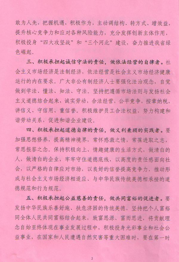 河北省工商聯(lián)踐行社會主義核心價值觀倡議書