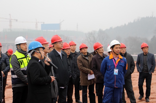 1月14日上午,四川簡(jiǎn)陽(yáng)市委書記王宏斌來(lái)到中太建設(shè)集團(tuán)承建的唯品會(huì)(中國(guó))西部總部基地項(xiàng)目現(xiàn)場(chǎng),實(shí)地觀看了施工作業(yè)情況,并組織召開座談會(huì),對(duì)一期工程施工進(jìn)度及質(zhì)量給予高度肯定。簡(jiǎn)陽(yáng)市長(zhǎng)趙春淦、市委副書記王德彰、副市長(zhǎng)陳建龍及市政府、市人大、市政協(xié)及政府相關(guān)職能部門三十余人陪同視察。