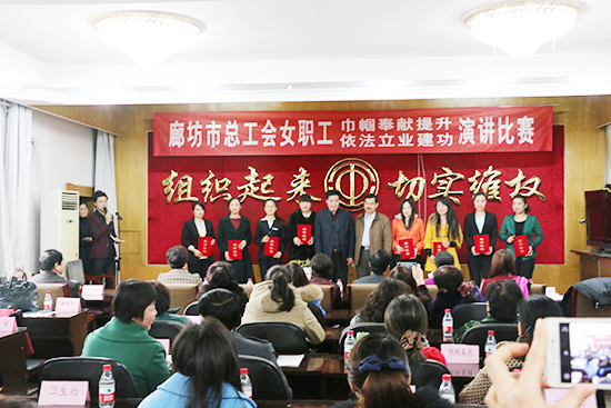 比賽開(kāi)始前,市總工會(huì)常務(wù)副主席關(guān)景發(fā)致辭;比賽結(jié)束后市文廣新局黨組副書記李克儉點(diǎn)評(píng)。廊坊市人大常委會(huì)副主任、市總工會(huì)主席畢曉明,市總工會(huì)副主席田慧蘭,中太建設(shè)集團(tuán)黨委副書記、工會(huì)主席鐘崇鶴等人為獲得獎(jiǎng)?lì)C獎(jiǎng),并合影留念。