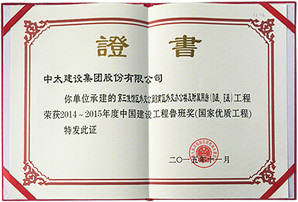 近日,中國建筑業(yè)協(xié)會公布了2014-2015年度中國建筑工程評比結(jié)果,中太建設(shè)集團承建的北京“第三使館區(qū)外交公寓B南區(qū)外交辦公樓及附屬用房(D座、E座)”工程項目榮獲中國建筑工程最高榮譽獎--魯班獎。