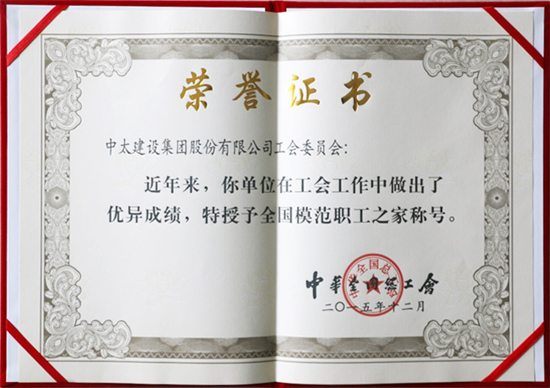 集團(tuán)工會(huì)被授予“全國(guó)模范職工之家”榮譽(yù)稱號(hào)