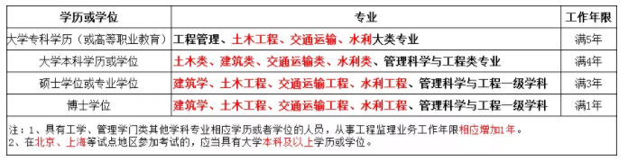 具有工程技術(shù)或工程經(jīng)濟(jì)專業(yè)大專以上(含大專)學(xué)歷,并符合下列條件之一者,可申請(qǐng)參加監(jiān)理工程師執(zhí)業(yè)資格考試。