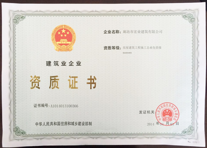 4月3日,經(jīng)國家住房和城鄉(xiāng)建設(shè)部核準(zhǔn),中太建設(shè)集團(tuán)股份有限公司控股子公司廊坊市宏業(yè)建筑有限公司正式晉升為房屋建筑工程施工總承包壹級資質(zhì)。
