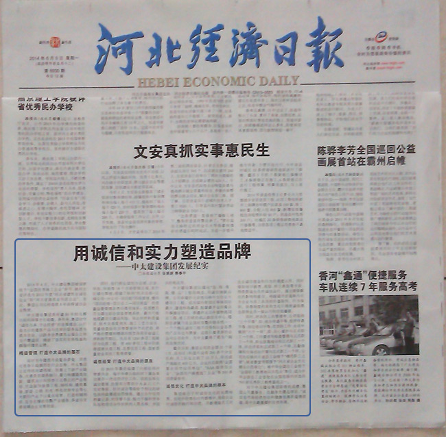 河北經(jīng)濟(jì)日?qǐng)?bào)報(bào)道了中太建設(shè)集團(tuán)用誠(chéng)信和實(shí)力塑造品牌