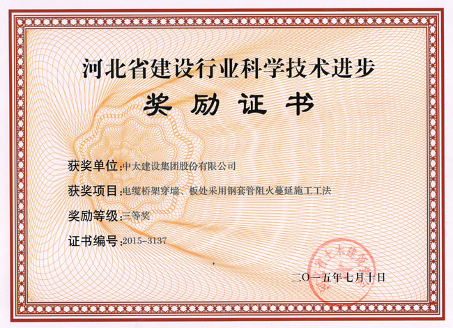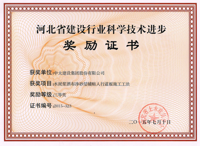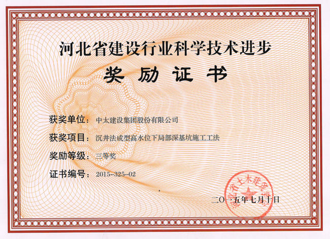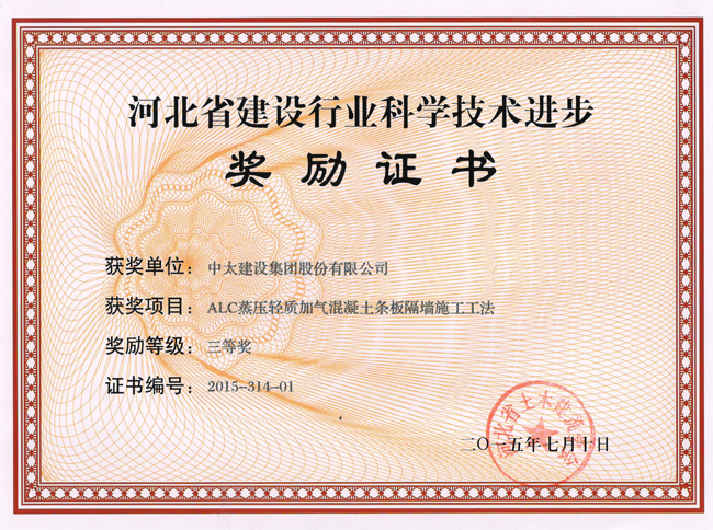 2015年河北省建設(shè)行業(yè)科學(xué)技術(shù)進(jìn)步獎勵證書匯總