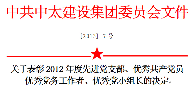 2012年度,集團(tuán)公司各級(jí)黨組織堅(jiān)持以科學(xué)發(fā)展觀為指導(dǎo),按照集團(tuán)黨委的總體要求,緊緊圍繞“一園兩翼,多元發(fā)展,實(shí)現(xiàn)中太產(chǎn)業(yè)結(jié)構(gòu)轉(zhuǎn)型升級(jí)”和“三個(gè)跨越、四個(gè)一體化”的戰(zhàn)略發(fā)展目標(biāo),堅(jiān)持“打中太牌,走全國路,謀海外財(cái)”的發(fā)展方針,深入貫徹落實(shí)黨的十八大精神,結(jié)合黨委開展的“三抓三帶”活動(dòng),團(tuán)結(jié)帶領(lǐng)廣大黨員積極創(chuàng)先爭(zhēng)優(yōu),服務(wù)中心工作,為推動(dòng)企業(yè)持續(xù)、健康、和諧發(fā)展發(fā)揮了黨組織的戰(zhàn)斗堡壘作用和政治保障作用;廣大黨員在各自的崗位上勤奮工作、勇挑重?fù)?dān),發(fā)揮了黨員的模范帶頭作用,涌現(xiàn)出了一批業(yè)績(jī)突出的先進(jìn)集體和優(yōu)秀個(gè)人。為表彰先進(jìn),樹立典型,充分發(fā)揮榜樣的示范作用,激勵(lì)黨員和員工見賢思齊,全面推動(dòng)集團(tuán)公司科學(xué)健康發(fā)展,在紀(jì)念中國共產(chǎn)黨建黨92周年之際,集團(tuán)黨委決定,對(duì)混凝土公司黨支部等8個(gè)“先進(jìn)黨支部”、林維生等39名“優(yōu)秀共產(chǎn)黨員”、楊召國等9名“優(yōu)秀黨務(wù)工作者”、閆建薇等10名“優(yōu)秀黨小組長”予以通報(bào)表彰。
