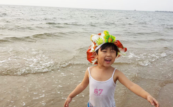 拍了照片后,突然讓我感覺像文清同學(xué)媽媽去澳門時(shí)住在海景房拍的海景照片! 看完海景就開始了匆忙的換泳衣準(zhǔn)備下海,海景公寓的好處就是出來小區(qū)走上自己的棧道就是小區(qū)的私家海灘,非常干凈。近距離的接觸大海,吹著涼爽的風(fēng)(天氣多云,溫度在29度),讓我們一行幾個(gè)馬上開懷起來,每個(gè)人的興奮在臉上流露。孩子是最興奮的,跑到海邊上,任憑海浪一層層的打過來(這天風(fēng)并不大),孩子說:“媽媽,你看大海碰我了!”竟然用起了擬人句,把大海打過來的浪花比作在“碰”,這字用的多么美妙!我一邊欣賞著美景一遍在咂摸著這話,贊嘆著孩子的天真和用詞之妙。我們真的跳入大海浸泡的時(shí)候,舅舅在照顧著她,突然一個(gè)浪打在了孩子的頭上,孩子嚷著:“我要離開大海了”,這是在身邊的舅舅轉(zhuǎn)告我的,我在想孩子真是長(zhǎng)大了,會(huì)表達(dá)很多個(gè)人的感情了,“啊,我要離開大海了”是一個(gè)陳述句,但是好像是表達(dá)著一種不舍得離開但是有不得已的感情,她很想在大海里再待一會(huì),但是因?yàn)樗焕嘶ù驖窳祟^發(fā),依她個(gè)人的膽量可能害怕了,所以說了句“啊,我要離開大海了”,孩子的成長(zhǎng)讓我們自覺不自覺真切感受到了。然后她自己在海灘玩沙子,挖了大大的沙坑,每當(dāng)海浪沖過來的時(shí)候,總是興奮的說:“媽媽大海幫我大忙了,還給其他家人也興奮的嚷嚷,大?墒菐土舜竺α恕。當(dāng)我問她到底幫了什么忙時(shí),她說:“大海給我的沙坑送來了水啊”(估計(jì)是她不用拿著自己的小碗去海邊舀水了)。我感嘆著女兒的天真浪漫和快樂興奮,內(nèi)心在想:帶著孩子出來玩玩是多么對(duì)的選擇,大自然的風(fēng)光的確是能刺激人的靈感,說了那么多令我平時(shí)聽不到的妙字妙語。這趟短途旅行意義非凡!