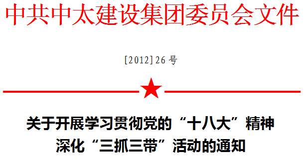 以科學(xué)發(fā)展觀為指導(dǎo),以學(xué)習(xí)貫徹落實黨的“十八大”精神、爭創(chuàng)新業(yè)績?yōu)橹骶,圍繞“抓創(chuàng)新、促科學(xué)發(fā)展,抓項目、促員工增收,抓落實、促作風(fēng)轉(zhuǎn)變”的主題,在集團公司各級黨組織中深入開展“三抓三帶”活動,團結(jié)帶領(lǐng)廣大黨員圍繞中心工作,履行崗位職責(zé),在推動集團科學(xué)發(fā)展、創(chuàng)新發(fā)展、和諧發(fā)展中當先鋒、做表率,充分發(fā)揮好黨組織凝聚力和黨員模范帶頭作用,共同創(chuàng)造中太更加幸福美好的未來。
